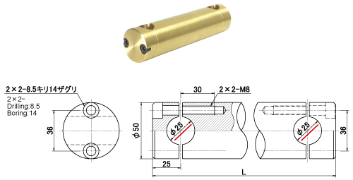 両端穴付タイプ 対応ホルダー径:φ25
