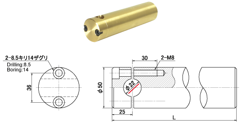 両端穴付タイプ 対応ホルダー径:φ25